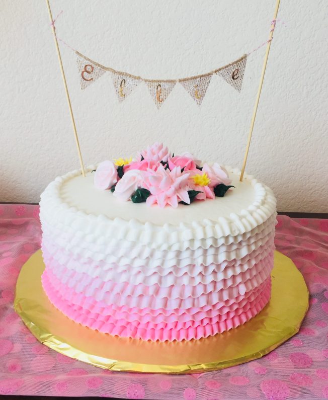 The cake is by “Cakes by Karen” in Northglenn. It was yummy!! Amie wanted strawberry cake and it had Bavarian cream inside with buttercream frosting.